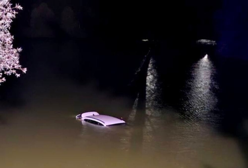 Auto v rybníku v Brodne